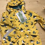 Ein sehr spannender Vorschlag für die Produktion von nachhaltiger Regenkleidung kommt von Frugi aus England. Frugi gehört schon von Anfang an zu unserem Sortiment und setzt sich seit Jahren für ökologische Kleiderproduktion ein. Seit einigen Jahren haben sie nun auch tolle Regenkleider entwickelt. Das spezielle daran: ihre Regenkleider werden aus recycleten PET Flaschen gemacht. Und natürlich kommen die Frugi Kleider wie gewohnt farbig und fröhlich daher – so lassen sie die Sonne auch an einem trüben Regentag fast ein bisschen scheinen.